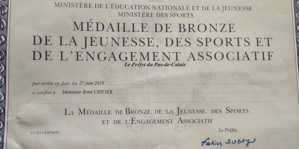 a reçu la médaille d'Argent de la Fédération France Judo, lors de l'assemblée générale du comité départementale de Judo du Pas de Calais, ce lundi 27 mai 2024. Pour son œuvre au sein du club et du judo.